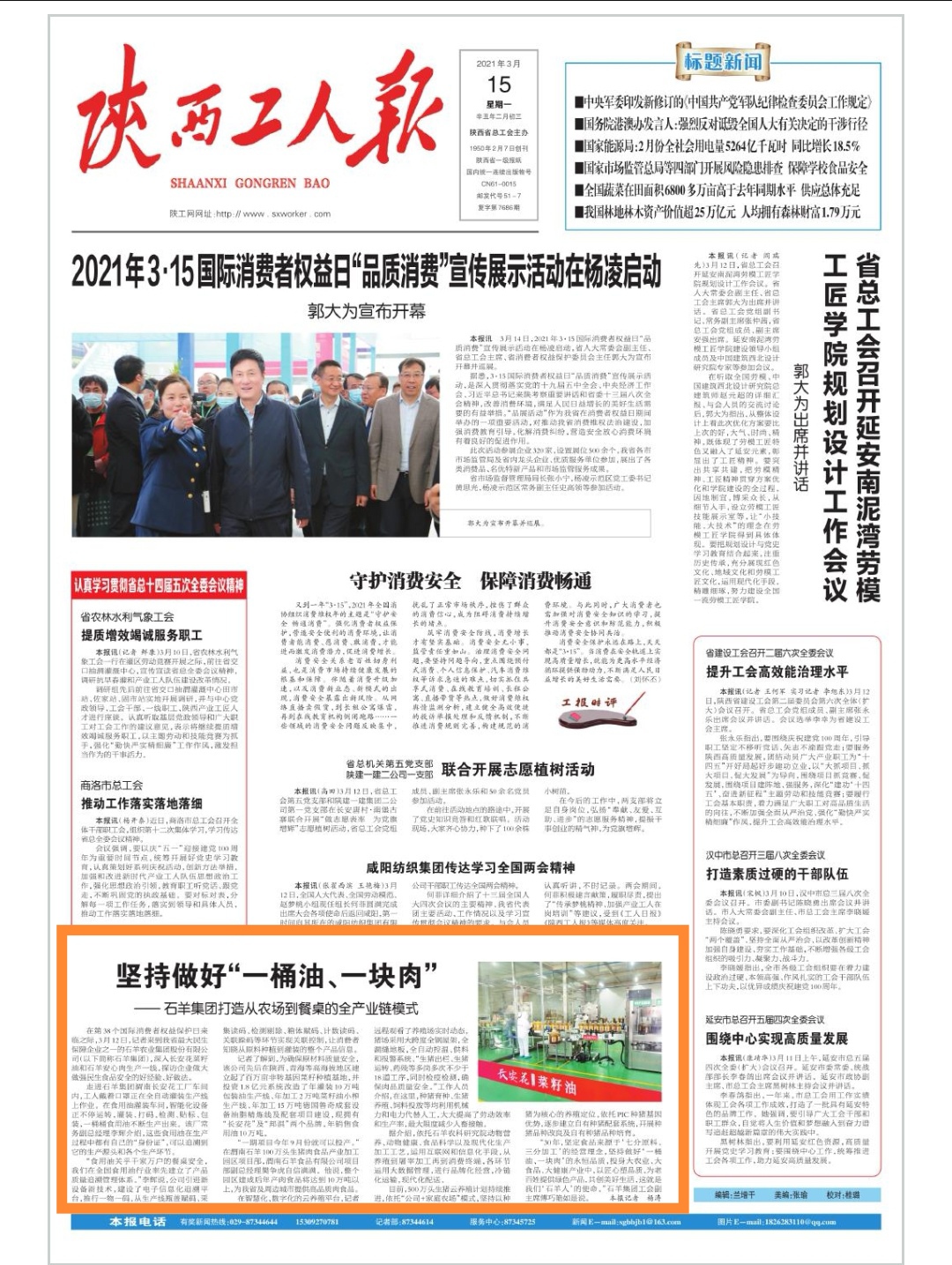 第39個國際消費者權(quán)益保護(hù)日前夕,陜西日報、西部網(wǎng)、陜西...